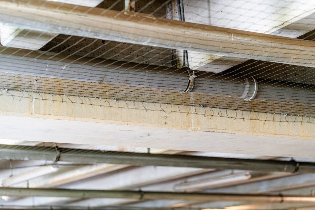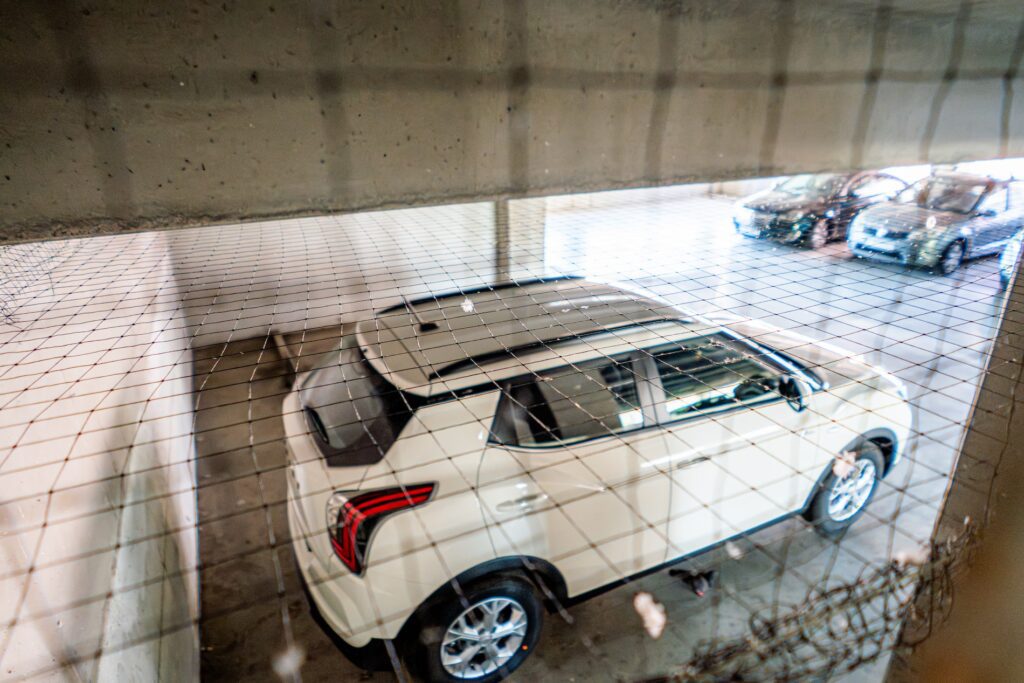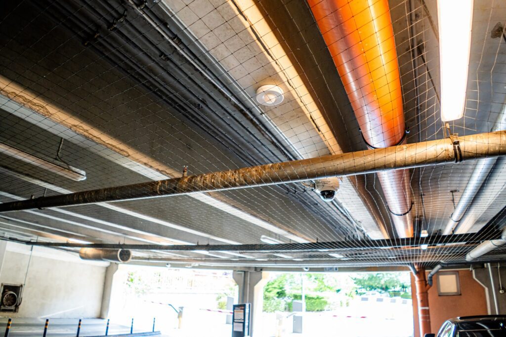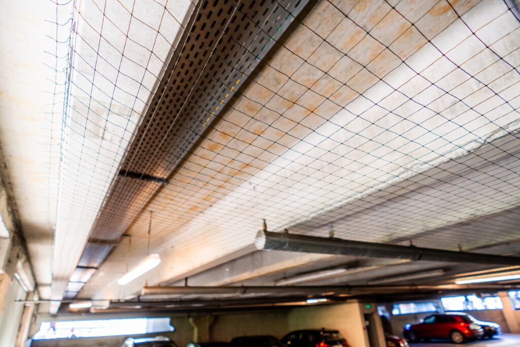 Am implementat un sistem complet de plase anti-păsări, care blochează accesul păsărilor în parcare, fără a le răni, păstrând clădirea curată și sigură.